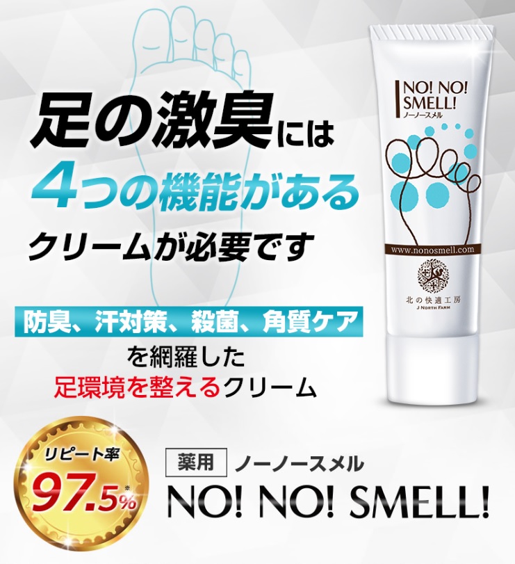 朝にサッとひと塗りするだけで、足の激臭をしっかり押さえる「ノーノースメル」。